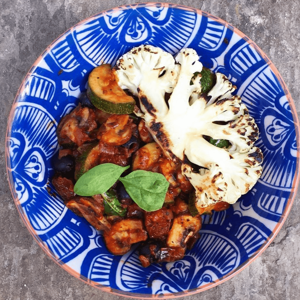 To serve, spoon the tomato ragu into two warm bowls and top with your beautifully-charred cauliflower steaks.